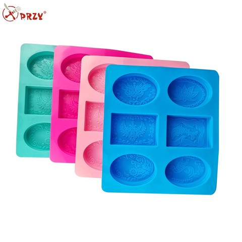 6 kaviteler Oval sabun kalıpları kare silikon kek kalıbı yuvarlak çikolata blok kalıp